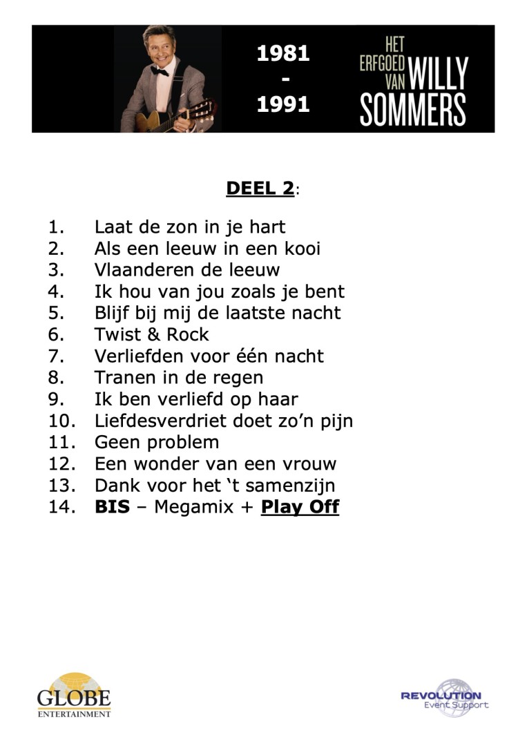 De jaren ’70 bracht ons Willy Sommers en 7 anjers, 7 rozen. Maar de jaren ’80 waren niet minder prachtig. Daarom, na het verrassende succes, inclusief verlenging, van de Erfgoed 1971-1981 tournee, duikt Willy Sommers in zijn jaren ’80, met live band en meezingers.
